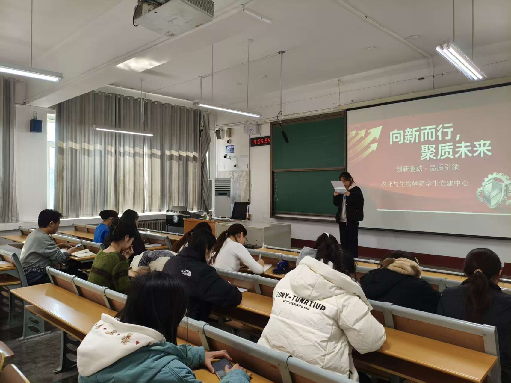 活动伊始,主持人带领全体学生深入研读《求是》发表的习近平总书记的重要文章《因地制宜发展新质生产力》,深入学习了新质生产力的核心理念、实践路径和战略部署等。随后,全体成员观看政策解读专题视频,视频通过宏观政策与产业案例相结合,生动呈现了科技创新驱动产业升级的实践场景,进一步强化了同学们对新质生产力的直观认识与时代使命感。 在专题研讨中,同学们围绕理解“向新而行”的核心内涵、结合案例谈谈品质引领对未来发展的意义、作为学生能为“聚质未来”做哪些行动展开深入交流,结合智慧农业、生物育种等前沿领域,探讨以技术创新回应时代需求的路径。大家据此撰写个人行动方案或感受,将专业思考转化为服务国家的实践规划,展现拉斯维加斯娱乐城 学子的使命担当。